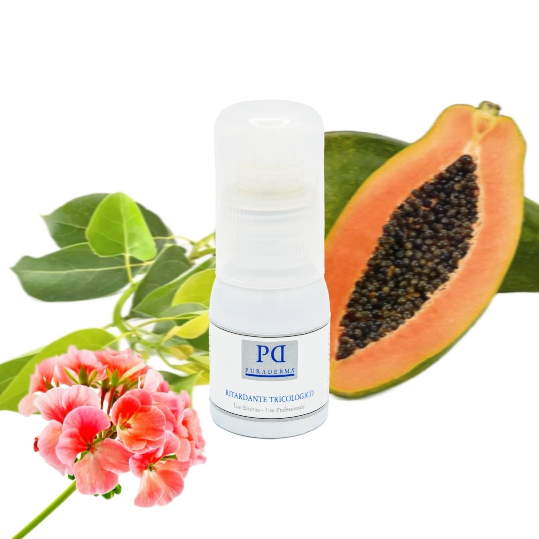 Смесь эфирных масел: герань, эвкалипт, мята, камфора, гвоздика, валериана, шалфей, папаин. Предназначена для дермокосметического ухода за нежелательными волосами.